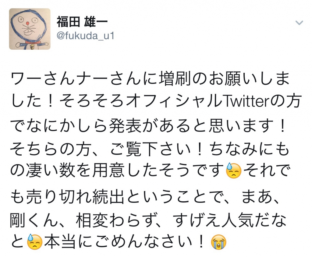 JUGEMテーマ:堂本剛 今日は剛さんが出演される「銀魂」のムビチケ第3弾発売日です。 北海道では9か所の映画館での発売、もちろん近くの映画館では扱っていないので、 行くんだったら札幌しかなかったのです。 でも、今日はお仕事… で、職場の後輩さんが研修が札幌であるというので、頼みました。 仕事終わってLINEをを見たら すみません、すみません 剛さんのだけ朝一番で売切れたそうです。 みなさん朝7時から並ばれてすぐ完売だったみたいで、ほ...