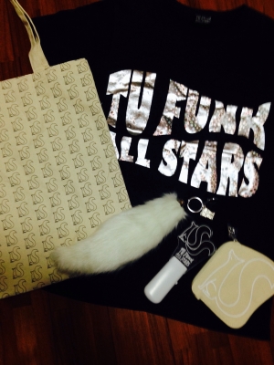 2016年2月18〜28日、13回公演というとてもタイトなスケジュールのライブ。 どうか最後まで無事に、素敵な空間となりますように。 グッズを全買いしました(唐突) 総額8,500円。 何を買うか決めずに物販所へ行ったのに、気がついたら「全部1つずつください」と口から言葉が出てきました。 まさかの狐モチーフ! 「TU FUNK ALL STARS CON!CER-TU」の「CON!」=コン(狐の鳴き声) っていう発想がすごいよねぇ。 以下グッズ紹介。 ■TU FUNK ALL STARS TUシャTU 2,800円(サイズだいたい身幅44cm,着丈64cm) プリントが銀色の...