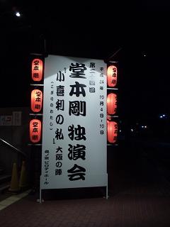 JUGEMテーマ:堂本剛 『小喜利の私』行って来ました。 会社を18:20頃に出て 森ノ宮ピロティーホールまで超ダッシュ。 ギリギリに間に合って 御神輿に乗って客席を移動する剛君を拝見出来ました。 終演後にはロビーに 剛さんが出てくる時に乗ってた船が展示されてました。 そうそう、近くにピロシもいましたよ。ぷぷぷ