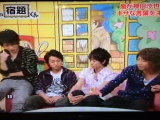 JUGEMテーマ:嵐 JUGEMテーマ:松本潤 見つけましたよ!!! 2008年9月29日(月)放送でしたね! 神田さやかちゃんが宿題くん来た時のやつ。 でもねでも・・録っていたHDDのdiskに 落とすとこが壊れてるので・・・ 保存できないんですよね〜 これは絶対保存版なのにー。。。 でもみる事だけはできたので ちょっとだけレポ! さやかちゃんの好きな男の人のタイプがね・・ どっかが王子テイストな人が好き キザでベタでクサイのとか大好き ってことだったんです。 相葉ちゃんが 「世界で1番愛してる...