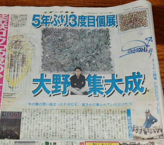 大野君3度目の個展開催おめでとうございます!! あああ、ああ、ああ、こんな日がまた来ようとは…… 2020年も半年過ぎて、この先どうなるのだろうかと、思い描いたように行かない状況下、それでもまた諦めず腕を開いてくれる。 ううう。 ありがとうございます。゜ 作品を前にどーんと構えた大野君。 コメント 〜今の僕の思いが詰まったFREESTYLE2020。皆さんに楽しんでいただけたらうれしいです 率直な言葉が胸を打ちます。 やれる努力の限りをして挑戦したい。 どんな空間が待っているのだろう…… 久し振りに晴れ...