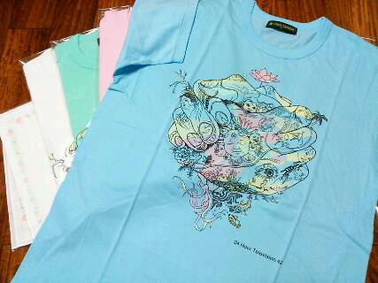 今月始めの宴席にてチャリTを見せて頂きました。 初めて間近にしたその神々しさ。。 猫に秋刀魚ぐらいの食いつきで眺めておりました。 そしてついに! 24HTV42チャリティーグッズ第一弾が手元に届きました〜。 意外や悩んだピンクが一番可愛い。 そうだ早速着よう! んんん、ブルーを♪