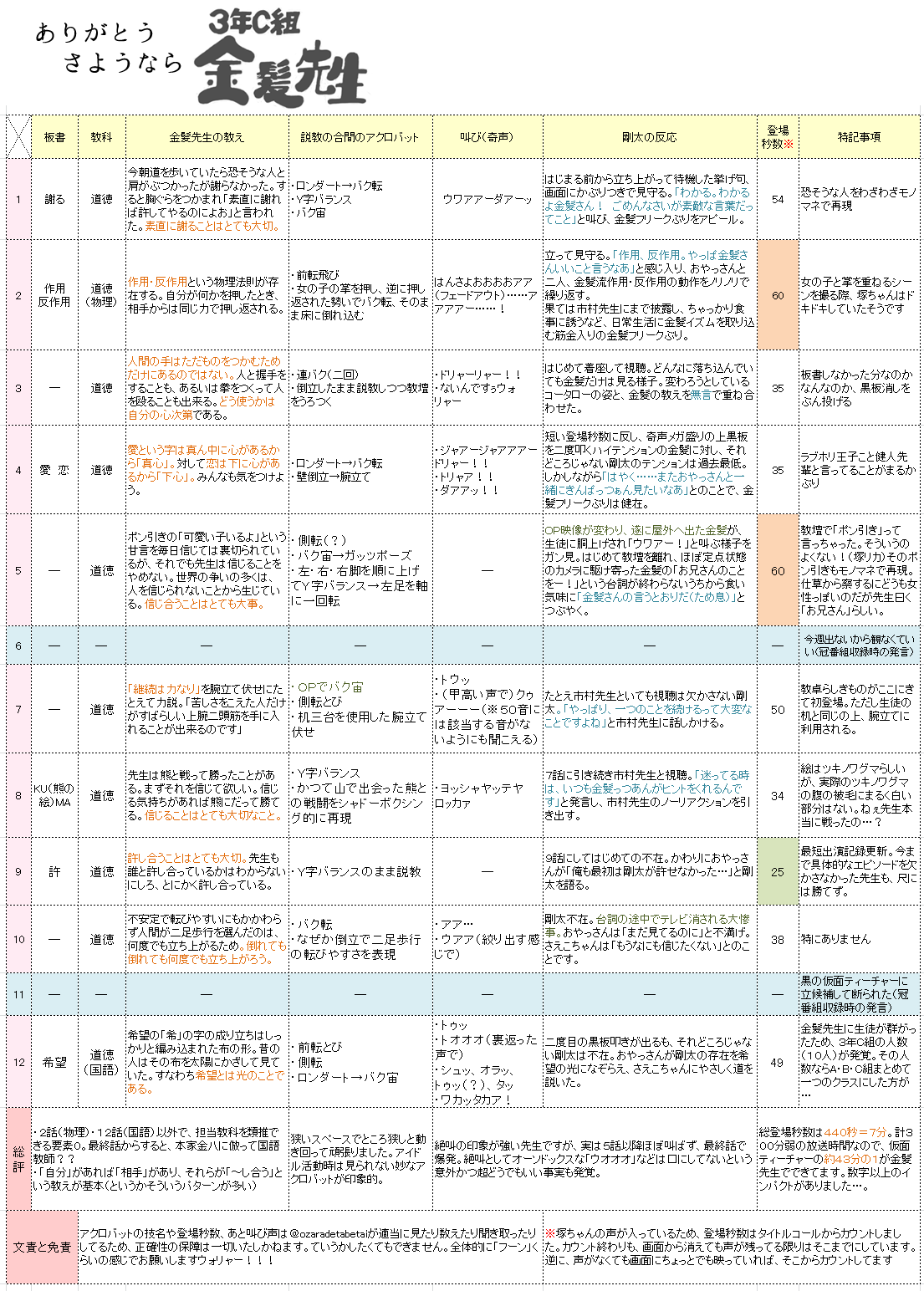 金髪先生まとめ作りました。クリックでものすごく拡大します。 塚ちゃんの連ドラ初レギュラー本当にうれしかったです。 もーほんとおもしろおかしいとしか言いようがない、演技しているのかしないのかというキャラでしたけれども、最後「希望」の授業は塚ちゃんにぴったりだーってなってうるうるしてしまったウッカリ塚田担です。