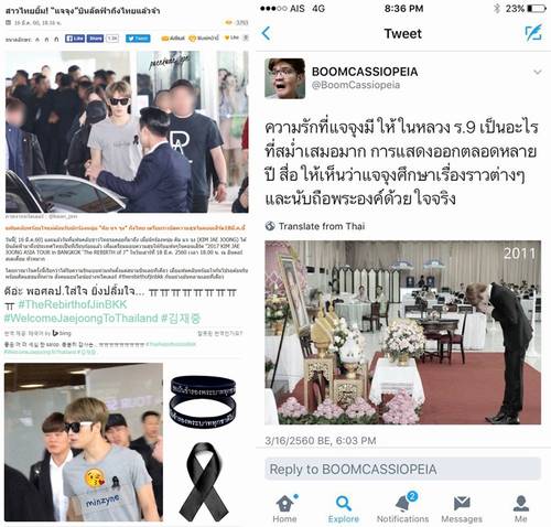 ◆「キム・ジェジュンタイ訪問黒いリボンを着用、死去した国王哀悼参加」TVDaily 2017. 03.17(金)12:41 歌手キム・ジェジュンが黒いリボンでタイファンたちの心を慰めた。 キム・ジェジュンは16日、アジアツアー「2017キム・ジェジュンアジアツアー・ザ・リバース・オブ・ジェイ(2017 KIM JAEJOONG ASIATOUR The REBIRTH of J)」の公演のためにバンコクナポム空港に到着した。 空港には、キム・ジェジュンを歓迎するファンが人だかりを成し遂げ、彼が着用したブレスレットと胸の黒いリボンがファンの目頭を赤くした。 ...
