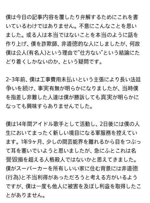 ホテル売却について、公式コメントが出ました。ユチョンの時のようにセンセーショナルな見出しと裏付けのない内容で面白おかしく書き立てるだけです。あの時から何も学ばないメディア。ジュンスはギリギリのところまで頑張って、社員を守るために最大な決断をしました。ちゃんと買い手側に雇用の確保と、売却代金で退職金を全額支給するとあります。 ◆「【公式全文】ジュンス(JYJ)側、ホテル経営困難で売却…賃金未払いはナシ」WoW!Korea 2/7(火) 19:36配信 韓国アイドルグループ「JYJ」メンバーのジュンス側が、済州トスカーナ...