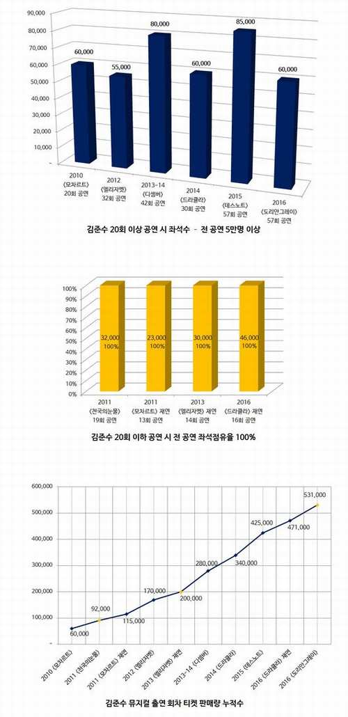 ここんとこヨロシク!→「才能や能力が伴っていないチケットパワーは生命力が短い。」 誰かに肩入れしたような偏執狂的な表面的な見方しかできない記事のあとこういう記事が出ると嬉しい。この記事にはデータがついてました。 ◆「キム・ジュンス、ミュージカル界でなぜ特別か。「300回公演の意味」」OSEN 2016.10.25 11:28 歌手兼ミュージカル俳優キム・ジュンスはミュージカル界で重要な存在だ。 単にスターなのでそのようなことだけではない。 すぐに300回の公演を迎えるキム・ジュンスがミュージカル界で持つ意味を探ってみた...