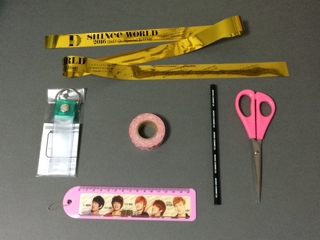 JUGEMテーマ:SHINee 東京ドームでシルバー1枚&ゴールド2枚テープを取る事が出来たので、ゴールドのテープを最近話題のタワレコの銀テホルダーに入れてみることにしました! せっかくなので手順を紹介したいと思います(`・ω・´) <必要な物> ・銀テープ ・銀テホルダー ・20cm以上の棒状のもの ・はさみ ・マスキングテープ ・定規(20cm以上推奨) 今回タカハCは家で20cm以上の棒状のものを発見出来ず、鉛筆(17cmくらい)で代用しました。 ちなみに定規は新大久保で買ったSHINee定規。 し...