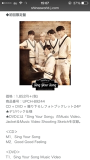 10月27日(火)にリリースされるSHINeeのニューシングル、 「Sing Your Song」のジャケットビジュアル公開! 初回限定盤は温かな“愛”を感じさせるクラシカルなビジュアル、 そして通常盤はメンバーの“絆”を表現した爽やかなビジュアル。 “絆と愛”を描いた今回の楽曲のイメージにピッタリな 異なる魅力に溢れた2形態。 SHINee New Single Sing Your Song 2015年10月27日(火)発売 ◆初回限定盤 価格:1,852円+税 商品番号:UPCH-89244 CD+DVD+撮り下...