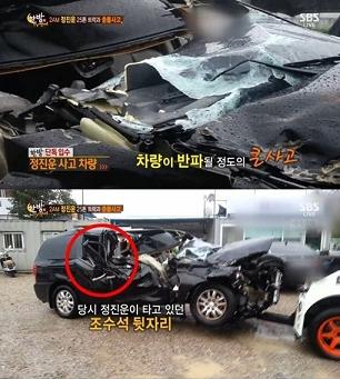 チョン・ジンウン事故車両公開、廃車水準『見るだけでもくらっとする!』 入力:2013.10.09 22:51 /修正:2013.10.09 22:51 チョン・ジンウンの事故車両が公開されて話題だ。/SBS放送キャプチャー [スポーツソウルドットコム|eニュースチーム]チョン・ジンウンの事故車両が公開された。 9日放送されたSBS『一夜のTV芸能』ではグループ2AMチョン・ジンウン交通事故現場を単独で公開した。 この日公開されたチョン・ジンウン事故車両写真は凄惨な事故当時を察するようにした。 所属事務所関係者は「車から降りることもでき...