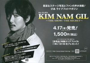 キム・ナムギルのムック「ぴあライブフォトマガジン キム・ナムギル 〜THE SHOW/THE SECRET〜 (仮)」が、2014年4月17日に発売されます。3/25・26に行われたキム・ナムギルのファンミーティング「THE SHOW/THE SECRET」の豊富なステージ写真とファンの声が満載の1冊!この商品はオンラインショップAmazon(送料無料)ほかで購入可能です。 アマゾン ・ぴあライブフォトマガジン キム・ナムギル 〜THE SHOW/THE SECRET〜 (仮) ・サメ 〜愛の黙示録〜 DVD-SET1 ・サメ 〜愛の黙示録〜 DVD-SET2 ・サメ 〜愛の黙示録〜 Blu-ray SET1 ...
