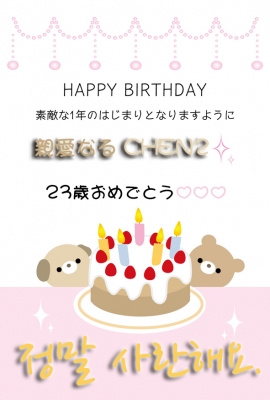 親愛なるじょんでくん、お誕生日おめでとう^^大好き。日本ではもしかして「愛してる」よりも「大好きの方がウケるかも!?ちぇんちぇん、大好き[:ラブ:][:ラブ:][:ラブ:]圧倒的な歌声をこれでもか!というほど聴かせてくださいね・:*:・(*´艸`*)ウットリ・:*:・