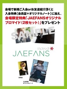 JAEJOONG 『The Reunion in Memory』会場限定 JAEFANSファンクラブ新規入会・お友達紹介キャンペーン実施決定! 6/26〜 横浜アリーナロビー内 【ファンクラブブース】11時〜Open予定 <詳細はこちら> http://jaefans.com/bbs/board.php?bo_table=news&wr_id=138 JAEJOONG"The Reunion in Memory" 注釈付指定席 2018年6月23(土)10:00〜下記プレイガイドにて販売開始! 【料金】全席指定 注釈付指定席¥10,000(税別) ◎ローチケ http://l-tike.com/jaejoong/ ⇒Lコード:71508 ◎チケットぴあ h...
