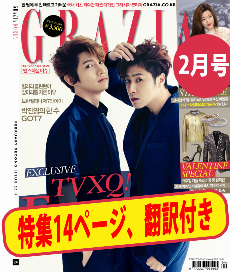 JUGEMテーマ:東方神起 昨年に続き 東方神起 デビュー10周年記念特集(14ページ)が掲載されている、韓国雑誌「CRAZIA 2月号」が来週には発売されますねぇ^^ デビュー10周年を迎えた東方神起の2人が、GRAZIAにだけ語ってくれた特別な14ページ!! 東方神起ペンとしては必ず手に入れるべきアイテムですよねぇ〜〜 でも記事は韓国語で書かれているからと残念がっている方に朗報!! 東方神起 デビュー10周年記念特集14ページの日本語翻訳文を添付して販売しているショップがありましたので紹介しますねぇ^^ 【予約 / 翻訳文付...