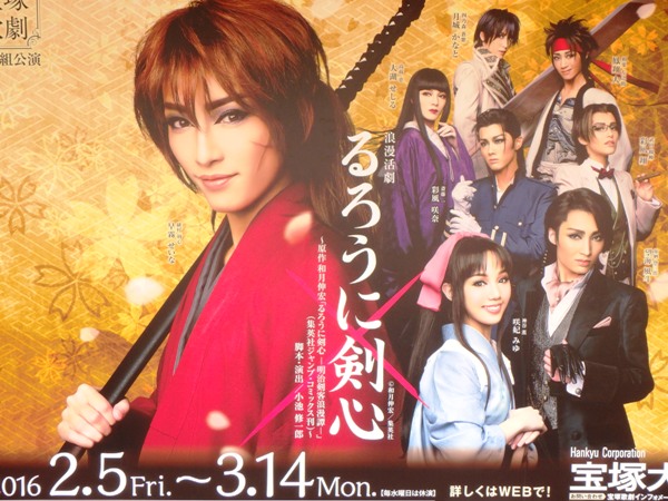 JUGEMテーマ:宝塚歌劇団 先日、宝塚歌劇雪組の 「るろうに剣心」を観劇しました。 宝塚の観劇はこれで2度目です。 ごらんくださいこのビジュアルを。 美しいですね〜。 なんというビジュアル再現。 漫画からそのまま出てきたみたい。 当日はこんな看板がありました。 私は「るろうに剣心」の原作ファンで、 漫画はもちろん、アニメ、OVA、実写映画など 制覇してきましたが、 今回宝塚で舞台になると聞いた時は 楽しみ半分不安半分でした。 でも見終わった後は、 るろ剣が宝塚の舞台になってくれて...