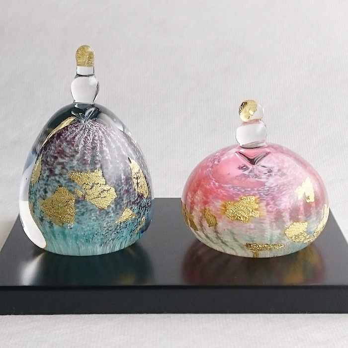 今日も寒いですが、一足早い春をお届け。 FUSION FACTORYの吹きガラスのおひなさまが入荷! WEBショップ「くらふと楓杏」にもアップです。 鮮やかな色彩を流線で彩るおひなさま「流彩雛」。 熟練の技で、一点一点、丹念に作られた吹きガラスのひな人形。 幻想的な色彩と、ひきこまれるような透明感は、手仕事のなせる技。 光の方向や見る角度によって表情が変わり、色鮮やかに輝きます。 初節句のお祝いや、女の子の出産祝い...