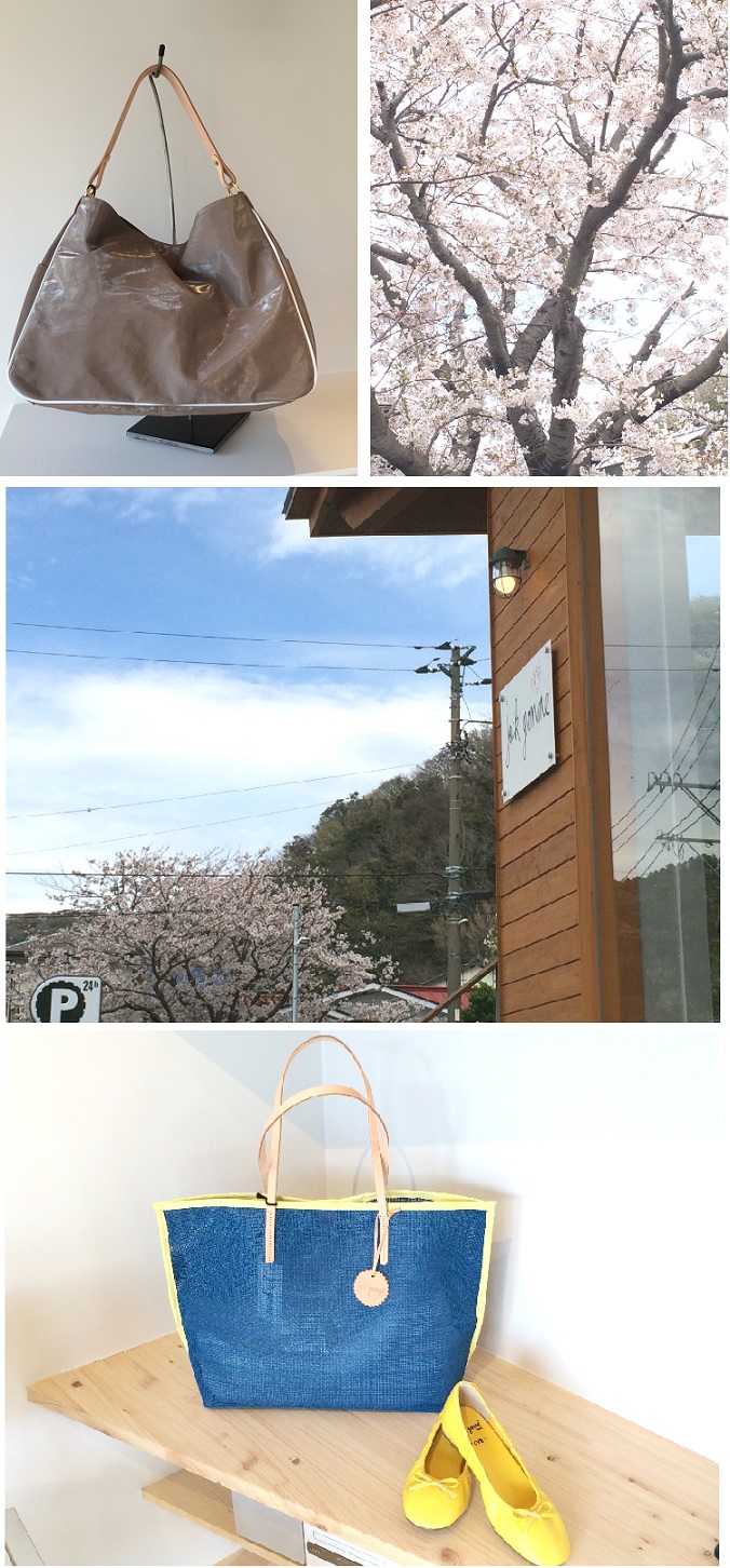 桜満開、綺麗ですね! 葉山は海と山に囲まれた自然豊かな土地。 山桜もちょうど見ごろで、淡いピンクや薄柳の和菓子のような柔らかな色合いが山々を色どっています。 そんな葉山に昨年開店したばかりの葉山ショールームより。 おかげさまで沢山の方にご来店頂いております。 都内にお住まいで週末は葉山周辺の別荘で過ごす方も多いこの地域。 おしゃれなカジュアルスタイルを楽しむ方がいっぱいです。 葉山ショウルームでは、これからの季節にぴったりなbay bag(写真下のブルーのバッグ) ...