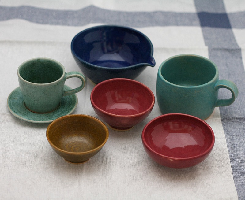 JUGEMテーマ:器 焼けたのを今日受け取ってきたうつわたち。 かわいいなぁかわいいなぁ。(*´∀`*) すべて手まわしろくろをつかった手びねりの作品なので、ゆがみがあるのだけど、それも含めてうつくしいなぁと思う。 いくつかは出品しようかと思っているのでメモ。 ◎後ろの青い瑠璃の片口。 瑠璃はどうもピンホールがいっぱい出ちゃうんだよなぁ。でももうそこも含めて愛してくださいと言いたい。深くてホントきれいな色ですよ。ちょっとしたサラダとか添えるのに良い大きさか...