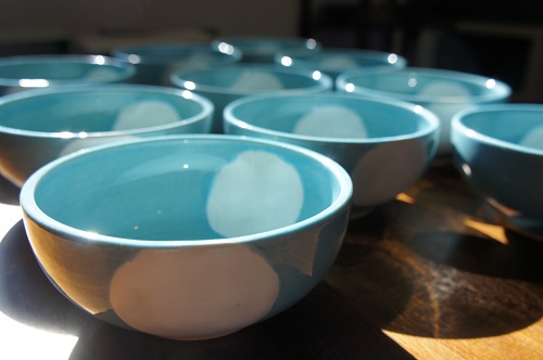 JUGEMテーマ:器 さて、まだまだ準備段階なので、とりあえずは少し前につくった器の写真をアップしますよ。(´∀`) これはトルコブルーの釉薬をかけたお皿。 まだつくるのが不慣れだった頃なのでお皿が厚い。笑 今ならもっと上手につくれるんだけどなぁ、と思いつつ眺める。 個人的にはこの色は食事をのせるにはちょっと…と思ったんだけど、周りのひとに写真を見せるとすこぶる反応が良いのがこのお皿。この色が人気なんだな。確かに食事はともかく焼き菓子のせるのは合う! が、できれば食事ものせられるお皿にした...