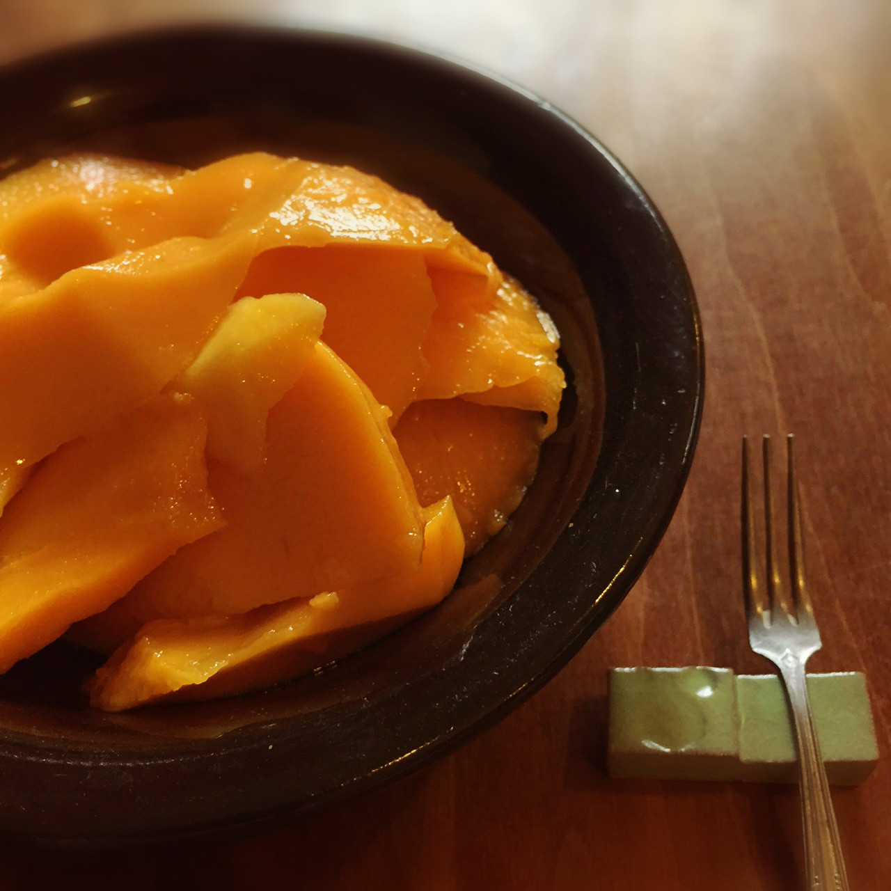 キーツマンゴー+銘々皿<kuroame> &階段の箸置き<maccha> 今日のおやつは 差し入れにいただいたマンゴーを山盛りで。 アップルマンゴーよりも時期が遅いキーツマンゴー。 広がる芳しいその香りと、ねっとり濃厚な熟れたお味に 夏の終わりを惜しみつつ。 * * * * * * * * * * 明日、27日(日)のギャラリー&ショップは都合によりお休みいたします。 何卒ご了承くださいませ♪ ----------------------------- 茜 陶 房 Gallery & Shop open 13:00 〜 18:00 close 木・金 不定休アリ 沖縄県浦添...