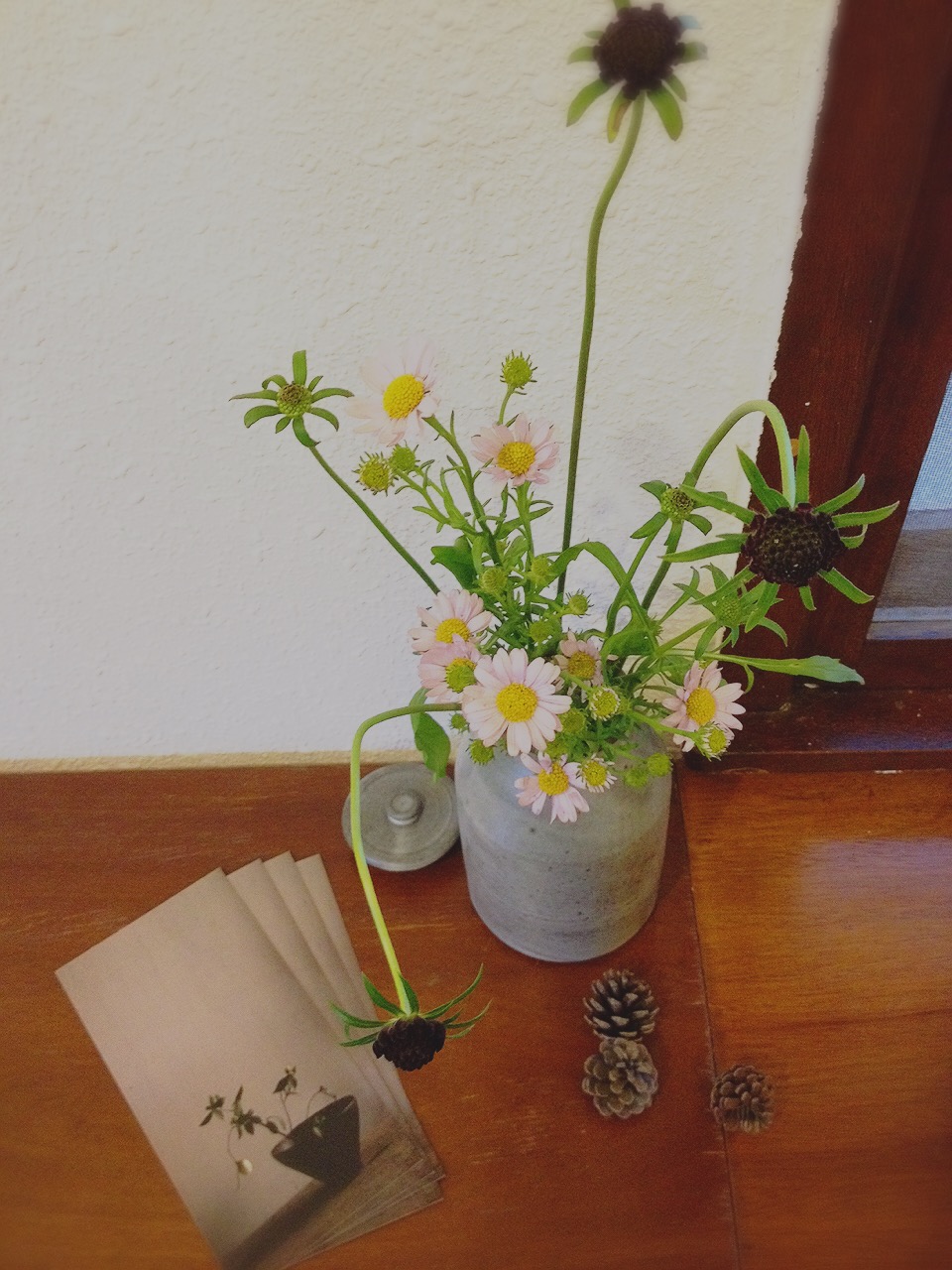 来月行う器展のDMが届きました。 可愛いお花と共に。 アスター&スカビオサの蕾&松ぼっくり +ジャー<kasumi> 茜陶房 器展は12月2日から、那覇の Detail fullさんにて。 詳しいお知らせ記事はただ今準備中。 もうしばらくお待ちくださいませ。 ------------------------------- 茜 陶 房 Gallery & Shop open 13:00 〜 18:00 close 木・金 不定休アリ 浦添市城間4-34-3 tel 098 876 5453 mail info@akanepottery.com ------------------------------- ・ HP &nbs...
