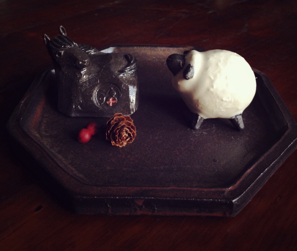 えとだま●ヒツジ 新しい年が明けました。 皆様にとりまして笑顔溢れる楽しい年となりますよう 心よりお祈り申し上げます。 干支の「未」は字義が「味」(み:あじ)であり、 草木の果実がいよいよ熟しちょうど滋養溢れた状態になることを指している、 とのこと。 2015年。 これまでに培ってきたものを根に じっくり育て熟した思いを伸びやかに表現してゆく 日々の全てを学びと心し精進したいと思います。 沖縄24度。気持...