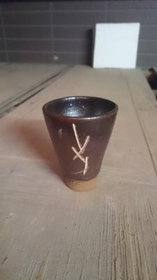 JUGEMテーマ:陶芸 *これは模様の部分を線状に彫って、白い化粧を埋め込み(線象嵌)、 その部分だけをマスキングして、釉薬がかからない様にして、鉄釉を施したものです。 作陶し始めてから数ヶ月目くらいのものです。最近のものは以前の記事参照されてください。 今見るとけっこうこれ頑張ってますね私(笑) 確か親父にハイカップ作るなんて10年早いとか言われて、 非常にグツりながら(イライラしながら)作ったのを覚えています。 今見ると、流石にアラはかなり目立ちます。写真ではわかりづらいで...