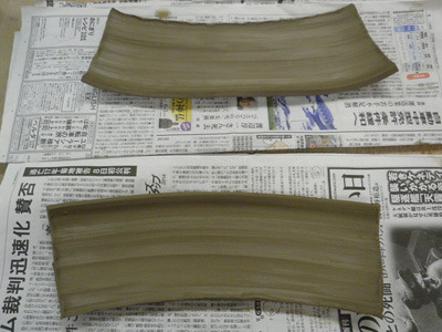 JUGEMテーマ:陶芸 備前土で制作中。 ロクロで口径25センチ、高さ13センチほどの土管をひいて、縦に割って2枚の板皿を作った。 ろくろ目がうまく付けられなかったけど、炎マジックに期待する。 備前土で花瓶をひいた。 高さのあるものをひくのは難しい。 くまちゃんが頭突きをしても倒れない安定型。