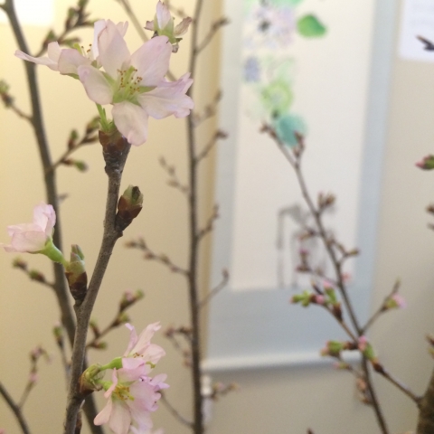 フロマエカフェのギャラリースペースに生け込みした啓翁桜は、一輪ずつ咲き出していて今週末には満開を迎えそうです。谷中墓地の桜は、蕾がふくらんで咲きだす寸前の、放出する寸前のエネルギーがこもった拳がピンク色の水玉のように、無数に空に広がっていて、今週末は晴れるとのことですし、ポンポンとほどけていきそうです。菜の花は甘い匂いを放って花盛り。春の夢のようなひとときを楽しんでいただけたら... 谷中散歩のついでに、見にいらしていただけたら嬉しいです♪私は、25日(木)は午後〜閉店まで、28日(土)、29日(日)は...