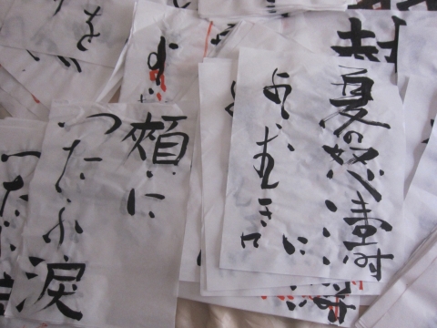 夏の怒濤に横向きに 頬につたふ涙 乳母車夏の怒濤に横向きに 橋本多佳子句 頬につたふ涙のごはず一握りの砂を示しし人を忘れず 啄木歌 書を練習したり、かきそこなったりして、 いらなくなったものを反古紙(ほごがみ)といいます。 私は反古紙をなかなか捨てれなくて... 一枚一枚、心をこめて 三回転半を決めるつもりで書いているので。 というわけで、3月から始めたお稽古の楷書や俳句の反古紙が それなりの嵩になっていました。 が、このたび、大きな作品を書かなくてはいけなくなり、 作品に...