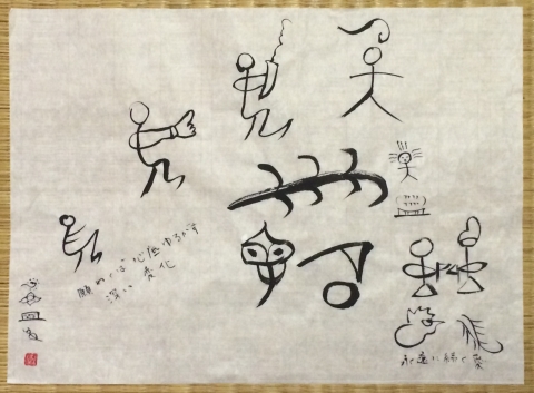 [願い] 願わくば 心底ゆるがす深い変化 永遠に続く愛 I pray Deep change to shake the bottom of heart Love to continue forever 中国の少数民族 ナシ族に伝わる象形文字「トンパ文字」で書きました^^心の底をゆるがすような、深い変化が欲しいです。 SOGEN書芸塾ARC(平野壮弦先生)2014年6月JUGEMテーマ:花の記憶
