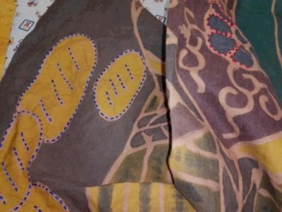 JUGEMテーマ:ファッションデザイン お芋でありません。 縁起のいいもの尽くしの絵柄です。 とにかく急いでいるので急いでジャケット。 最初はステッチはしないつもりでしたが、やっぱり無視できない・・・ 結局、小判と花紋にステッチ。 米俵にはどうしようかと悩みましたが重すぎかなということでやっぱりしないことに・・・ 昨日は藍染め縞木綿と型染めのハーフコートを作り、今日はジャケット。 春なの初夏まで気軽にはおれるジャケットに裁断。 メンズですがメンズライクのレディー用にも。 小...