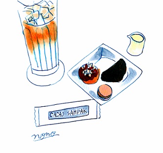 本日はシンプルスケッチです(*´▽`*) この前母と出かけたときに、 お茶したのは カカオサンパカ。 私は、 カフェラテアイスと ショコラ&ショコラを (正式名は忘れてしまいました(;´・ω・)) チョコレートケーキに、 チョコのマカロン。 チョコレートがかかったチョコレートアイスのセットです。 どれもカカオの風味があり、 チョコレートがとっても濃厚で、 美味しかったです(*^^*) ...