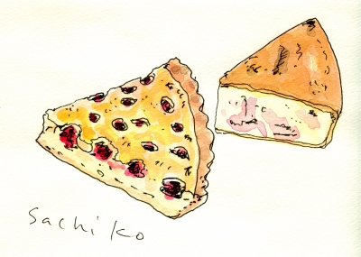 JUGEMテーマ:スケッチ うちにはありがたいことに たいてい頂き物のお茶菓子がある。 わざわざ買うことはめったにない。 でもたま〜に何にもなくて、 だけど、 ちゃんとしたケーキが食べたくなる時があって その時は近所のカフェで焼き立てをテイクアウトしてくるのです。 「一日置いたほうが味がなじんでおいしくなりますよ、」 と渡されたこの2種類のケーキ。 たしかに翌日はしっとり感が増していて、うれしさも倍増。 スケッチしたけど、 エンド...