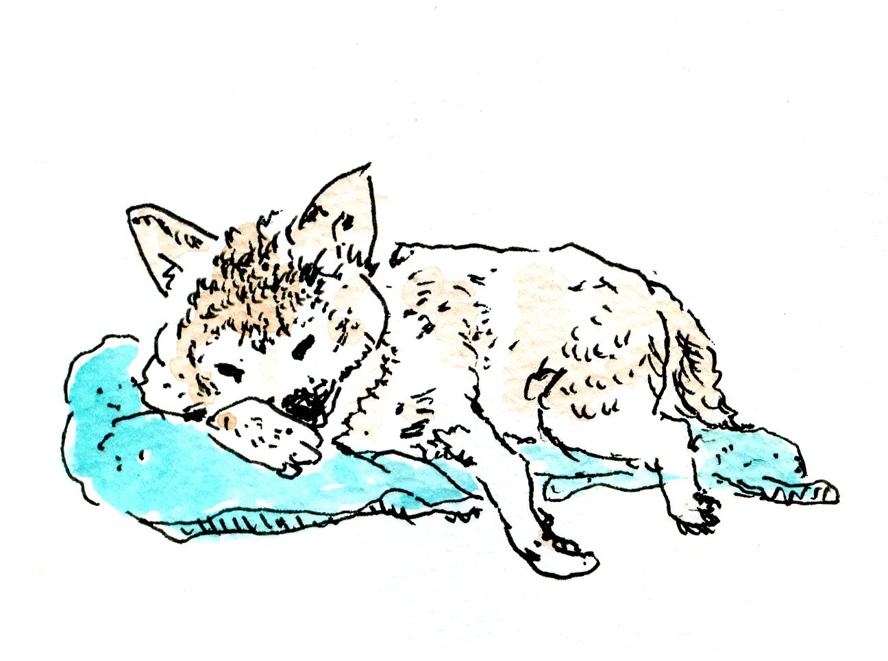 JUGEMテーマ:スケッチ 自分でタオルケットを引き寄せて枕を作り さらに腕枕 快眠のために自分で工夫するワンコなのです。