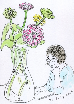 JUGEMテーマ:スケッチ 「芸術新潮 2016年1月号」の特集、漫画家 江口寿史氏の「5分スケッチ」にならって クラスの初めに、向かい合う人を5分間だけ描くことにしました。 ストップウォッチを5分にセットして「さぁ、描きましょう!」