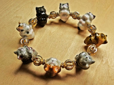 上手い具合に二匹並べてみましたところ、ハート形状になりました。 小ぶりにしてこれもブレスに・・・。 ハートのにゃんブレス 出来ました。 オリジナルフラワーボール付きです。 >|||||(・> 不思議の殿堂 <・)|||||< 毎度のご来店、誠にありがとうございます。 何故か本日33度予報の札幌・・・。 むぅ〜〜〜〜〜ん・・・でゴザイマス。 JUGEMテーマ:に...