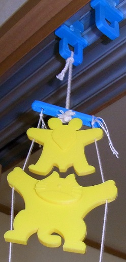 JUGEMテーマ:3Dプリンタ 今回、小黒三郎さんの昇り人形を模写してプリントしてみた 猫と鼠をプリントして孫と遊んだが喜んでいたが、まだ一人で遊べない少し早かったかな STLファイル 部屋に昇り人形を吊るす場所が無かったので、サッシのレール用フックを製作して取り付けた 昇り人形は簡単な作りだが面白い、大きさを変えたり形を変えたりしてみよう 誰でも場所を取らずに、製作できるから3Dプリンターは良いね