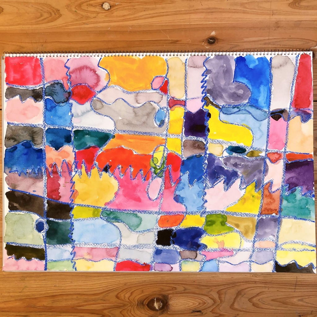 三原色と白黒の混色だけで100色以上のマスを塗り、完成した絵を見て、自由にタイトルをつけるプログラム。 思う色をつくること、枠を塗ること、 どこにどの色を置くか考えること、 絵を見て何かを感じること、 感じたことを言葉にすること。 単純な作業のようですが、基礎的な学びがあり、また広がりもあります。 体験教室に来ていただいた方に必ず最初にやっていただくプログラムです。 「海」(年長) 「カラフルなふじさん」(小3) ...