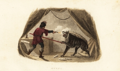 JUGEMテーマ:アンティーク版画 上は、男とハイエナの決闘場面! アビシニアのマイツシャ(現在エチオピアのゴンダールの近く)での出来事です 野営のテントで、男がピストルとパイプでハイエナを殺害中です この男の名前はジェームズ・ブルース、スコットランドの探検家 そうで...