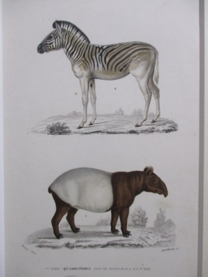 JUGEMテーマ:アンティーク版画 Mountain zebra, Equus zebra (vulnerable), and Malayan tapir, Tapirus indicus (endangered). ヤマシマウマとマレーバク(絶滅危種) マレーバク のんきそうな顔をしていますが絶滅の危機に瀕している希少種です 森の中で生活するマ...