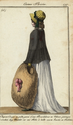 JUGEMテーマ:アンティーク版画 引きずるほどの巨大な毛皮のマフを持つ女性 マフとは、正面のお腹のあたりで両手を左右から入れる大型手袋です しかし巨大ですね〜 このアイテムについての記述が特にないのは、この時代毛皮のマフは一般的であり説明を必要としていなかったから ...