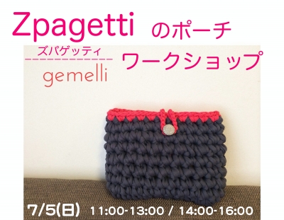 JUGEMテーマ:ハンドメイド*バッグ JUGEMテーマ:手芸、ハンドメイドアクセサリー JUGEMテーマ:アートワークショップ JUGEMテーマ:ワークショップ *7月のワークショップ* Zpagetti のポーチ・ワークショップ オランダで生まれた、Tシャツやカットソーなどの工場で出るハギレを糸として アップサイクルしたズパゲッティを使用してポーチを作ります コットンなので柔らかく、伸縮性があり、ボリュームのある太い糸で編んだポーチは独特な仕上がりです。 今回はwebshop "gemelli" の武井さん...