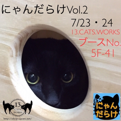JUGEMテーマ:13.CATS.WORKS 先週に続きまたもや東京浅草でのイベントに出店します! にゃんだらけVol.2今週末! 23日24日の両日出店しますよー! 13.CATS.WORKSのブースNo.5F-41です! 猫侍ブースに近ーい(=^・ω・^=) ねこ専でも沢山のお買い上げ、猫ハウスなどの予約をいただきましてありがとうございます。 にゃんだらけでも引き続き販売、予約も受け付けますよ! 前もってアナウンスされている、猫はがきの限定シルエット「デブ猫」も数量限定で販売...