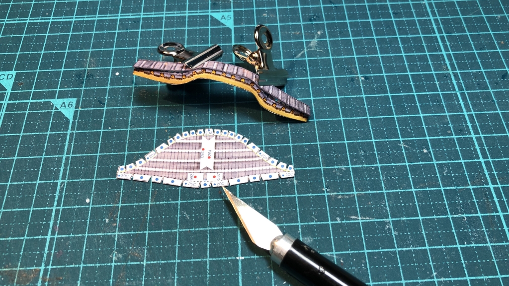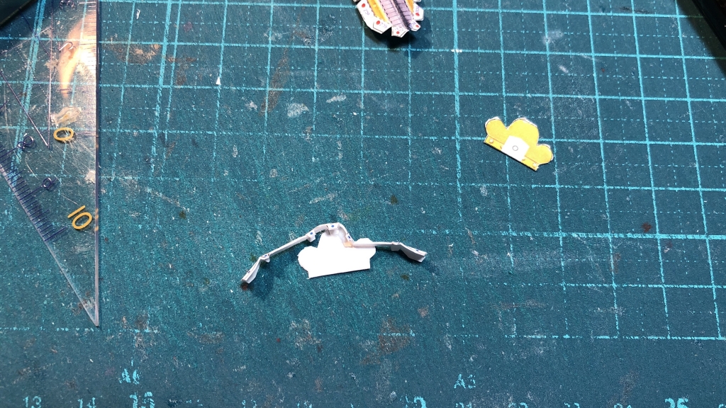 JUGEMテーマ:ペーパークラフト 屋根の装飾を作り始めているのですが、 なんていうんですか? あの鬼瓦の部分が、小さい、その上、曲線がおおい。 どうやって作りましょうか……? って考えていましたが、 地道に、ちまちま作戦を取ることにしました。 鬼瓦の外周にそって、接着していきます。 ぐるりと外周を接着した...