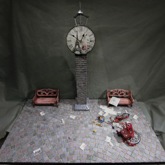 時計塔のある広場の風景をつくりはじめて2ヶ月、当初の予定とはかなり違うものになってしまいましたが、このほどいちおう完成のレベルに達しました。(完成とは言い切れないようなところもあるので、むしろ一区切りといった方が良いかもしない) ジオラマベースに様々なアイテムを仮配置したのが前回のレポートでした。 ドールやフィギュアを置かない方が緊迫感があるかなと思ってそれを外し、代わりに自転車を置いたけど、そうするとどうしても自転車にまずは目が行ってしまう。 このジオ...