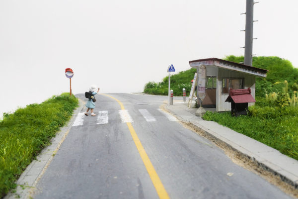 平塚に実在するバス停の風景を1/72スケールのジオラマで再現するという話の続きです。前回のレポートでは背景部分が出来上がり、今回はここに主人公となるフィギュアを組み込んでみた。 選んだのはプライザーのフィギュアで部分的に手を加え、全体をリペイントしてます。だいたい身長は1.5cmほど。またこの作品自体の大きさは20cm×25cmです。 夏休みの登校日、通学途中で久しぶりにクラスメイトに出会った場面を再現してみました。このシーンは手をあげている女...