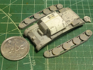 さて9月も半ばになりまして、今月29日(日曜)に開催を予定されている第9回 スケールモデラーズフェスティバルまで2週間足らずとなりました。 で、その日に新発売を予定している1/144巡航戦車Mk.IVですが、何とか 9月上旬の2週間でシリコン型の完成までもって行けまして、レジン樹脂を 幾つか流してみる所までも行けました。 1枚目の写真はまず原型まで出来た所です。これに主砲と主砲同軸機銃部品 が別部品となります。 2枚目の写真は今までの製品と同じようにMr.型取りブロックで枠を作り...