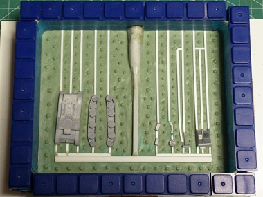 さて、「1/144 巡航戦車Mk.III (3)」で原型そのものの完成までゆきました ので、シリコン型の作成の方について書かせて頂きます。 まず今までと同じようにMr.型取りブロックで枠を作りますが、今までと 違うのは、4辺の枠を組み合わせて固定せず、プラ板で枠を作る時と同じ ように4辺別々に組んで、それぞれはマスキングテープで固定するだけに した事です。 そこに粘土を入れてなるだけ平面にして原型と樹脂流し用のランナーを プラ棒等を使って作り、面割りも考えつつ埋めます。毎度、原型製作よ...