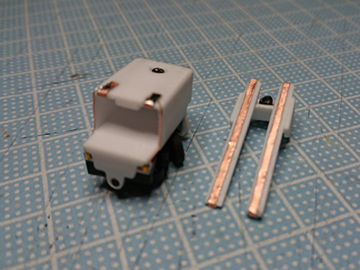 2台目の動力ユニットも作成しました。 1台目はヘッドライトの位置は接着固定、テールランプは両面テープの仮止めで位置が変えられるようにしました。 2台目はヘッドライトもテールランプも両面テープの仮止めとして、位置が変えられるようにしました。 動力ユニットの側面を目立たなくさせるための黒塗装は、1台目は水性アクリル絵具で塗装しましたが、ボディと擦れると落ちてくるので、油性マジックで追加塗りをしていました。 そこでふと、「ん?最初から油性マジック...