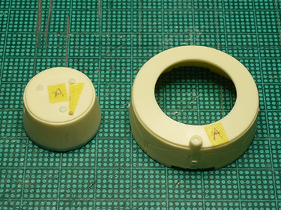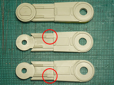 MPC製AT-ATキットの脚周りのディティールと可動ギミックを製作中です。 太股の脇にある2本のピストン状のものは、劇中では交互に動きます。 バンダイのキットでは、パーツの差し替えで再現されていました。 MPCのキットは、もちろんバンダイのような気の利いたパーツは無く、しかもどちらも同じ高さです(-∀-;) これでは雰囲気が出ないので、四角の部分を片方削り込んで円柱状にし、交互になるようにしました。 キットの4脚の脚は、2脚がヒザで曲がるようになっていて、残りの2脚は...